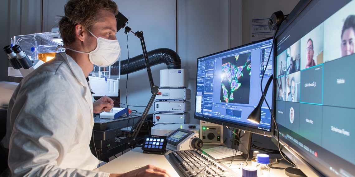 A supervisor then sits in front of the microscope in the lab, and the students are connected to the microscope’s operating computer using special software. In the video conference that runs simultaneously, the supervisor explains the device and operating software, how a sample must be prepared, and how good images can eventually be taken from it and analyzed.