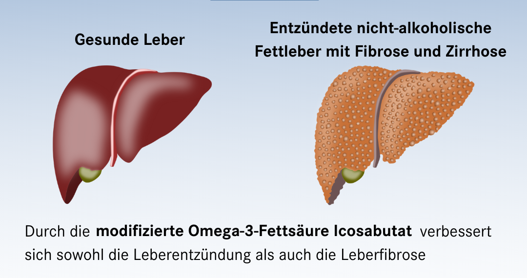 The challenge of creating an effective drug for NASH from omega‑3 fatty acids is that omega‑3 fatty acids are needed almost everywhere in the body for general energy metabolism. The liver also uses the fatty acids to produce energy and build its cells. As a result, omega‑3 fatty acids are quickly used up by the body, which is why they no longer have sufficient potential to inhibit liver inflammation. The high doses of omega‑3 fatty acids required for clinical efficacy are poorly tolerated and have undesirable side effects.