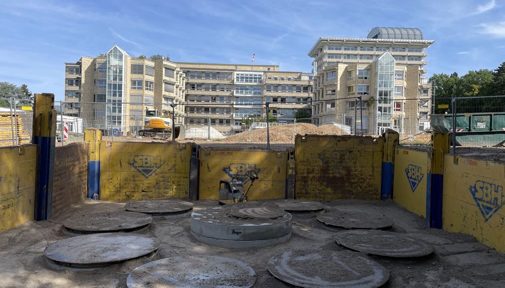 The Berufsgenossenschaftliche Unfallklinik (BGU) in Frankfurt am Main is one of nine large acute-care hospitals run by the Berufsgenossenschaft in Germany. By summer 2026, two new ward buildings with 308 beds will be built on the clinic campus in the Seckbach district. In the course of the upcoming construction work, a reorganization of the property drainage system for large parts of the site was also planned. The aim was to channel the precipitation water from around 14,000 m² of roof and traffic areas into the groundwater in a purified form in order to avoid overloading the sewer system.