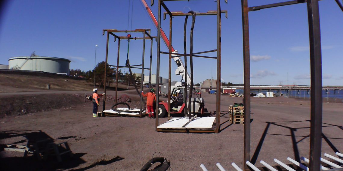 The grid is in turn assembled from prefabricated and stainless steel pipes, whose openings are fitted with fine-mesh membranes made of insensitive textile fiber. The air is supplied via robust hoses. The 15 modules were installed in a ring-shaped wastewater tank with an outer diameter of 22.5 m and an inner diameter of 12.5 m. The tank has a capacity of 1.5 m and a diameter of 1.5 m. The tank has a capacity of about 1,575 cubic meters. The aeration is required for chemical treatment processes of organic compounds in the wastewater, which are produced during oil processing.