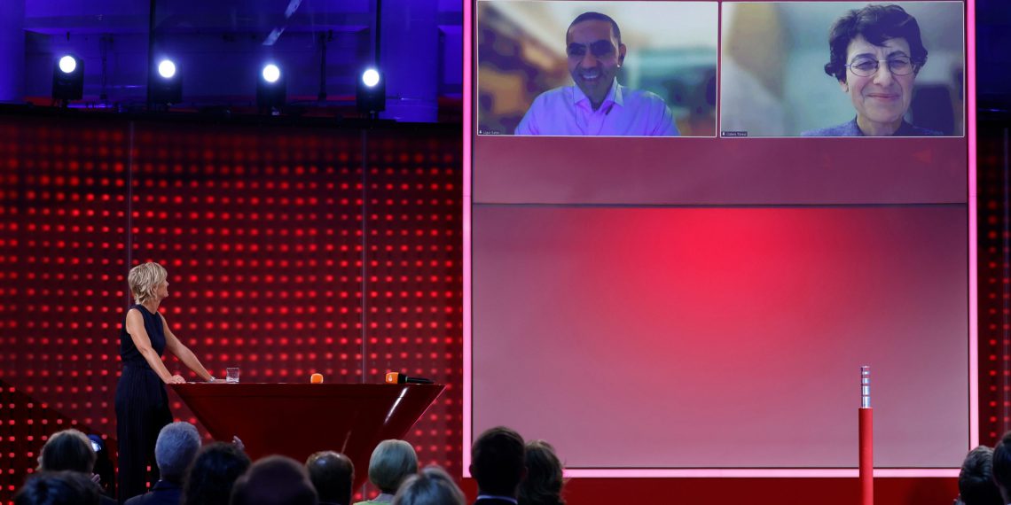 Together with their team, Professor Dr. Uğur Şahin, CEO and co-founder of BioNTech, and Dr. Özlem Türeci, Chief Medical Officer and also co-founder, have provided an unspeakably great service to hundreds of millions of people in a vastly changed world. The co-founders of the Mainz-based biopharma company and their team made a significant contribution to the containment of the COVID-19 pandemic by developing the first mRNA-based COVID-19 vaccine. For this achievement, the partners of the German Founders’ Prize — stern, Sparkassen, ZDF and Porsche — awarded the two researchers and co-founders, as well as their entire team, the Special Prize of the German Founders’ Prize on Tuesday [Sept. 14, 2021] in the ZDF capital city studio.