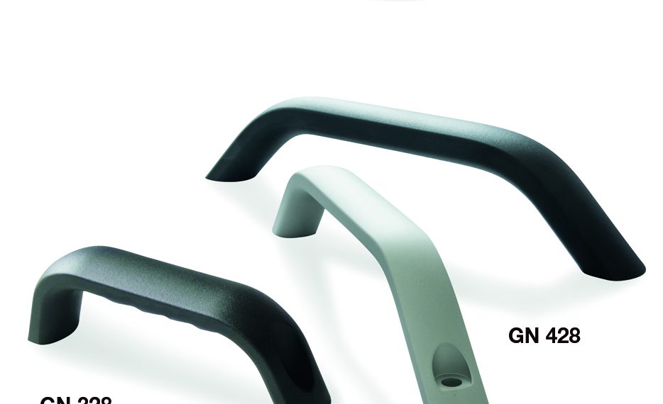 The GN 126 adjustable flat tension levers are characterized by their dynamic shape, produced by zinc die-casting and finished with a plastic coating, and are ideal wherever pivoting ranges are limited. The integrated serration allows for the position of the handle to be adjusted without having to loosen it. If required, the same GN 126.1 shape is available with a completely stainless steel interior. The GN 328 and GN 428 cabinet “U” handles and machine handles are made of cast aluminum or a bent aluminum profile and are also available with different surface finishes. For applications in particularly corrosive environments, the GN 328.5 cabinet “U” handles are also available in stainless A4 precision cast stainless steel.
