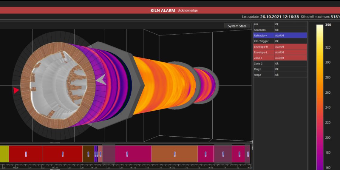 Users can para­me­ter­ize alarms for spe­cif­ic tem­per­a­ture ranges and zones. Oth­er infor­ma­tion — such as zone tem­per­a­ture and sys­tem alarms, rota­tion times, and race­way sta­tus — is dis­played simul­ta­ne­ous­ly, so users always have an overview of the process and their sys­tem with­out switch­ing views. This allows man­u­fac­tur­ers to opti­mize and man­age main­te­nance sched­ules to avoid cost­ly shut­downs and reduce set-up time. The CS400 rotary kiln tem­per­a­ture mon­i­tor­ing sys­tem is avail­able now.