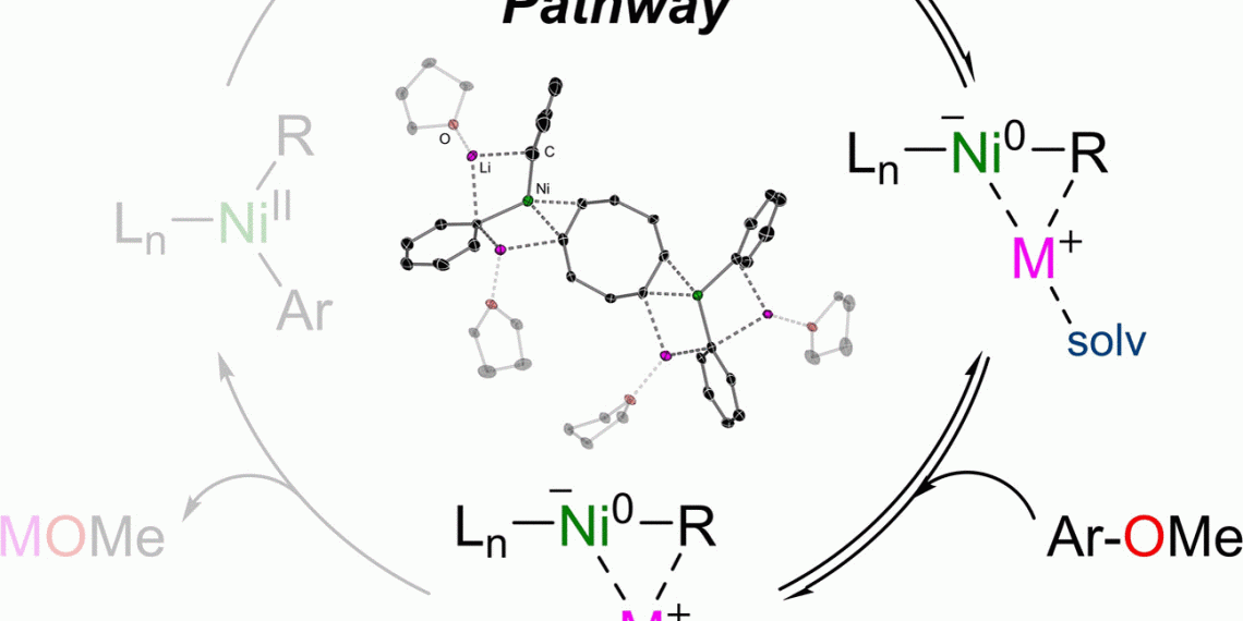 As the reac­tion pro­gressed, the nick­e­late cat­a­lyst ini­ti­at­ed the cleav­age of the dif­fi­cult ether bond between car­bon and oxy­gen, after which the prod­uct, phyenyl­naph­tha­lene, could form. The authors iden­ti­fied the sta­bi­liz­ing sol­vent and the coop­er­a­tion between lithi­um and nick­el as instru­men­tal in the suc­cess of the reaction.