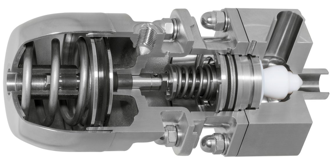 The valve is also opti­mal­ly equipped when it comes to hygien­ic safe­ty: It meets both the stan­dards of the EHEDG clean­ing test and the stan­dards in accor­dance with the Amer­i­can 3A definition.