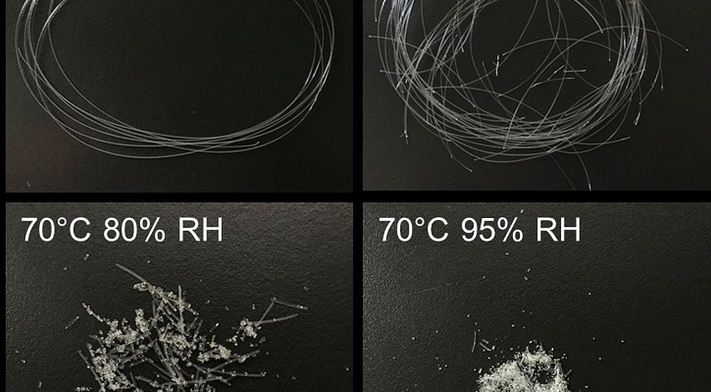 As can be seen in the picture, the monofilaments became brittle after only two weeks at higher temperatures starting at 70 degrees Celsius, which the DTNW authors recently reported on in the journal Applied Polymer Materials. Under standard conditions, however, the monofilaments showed no measurable reduction in stability, even after almost three years, and the PLA nonwovens were also in no way inferior to their fossil-based counterparts in terms of filtration performance. “The focus for the use of PLA as a filter material will, in my opinion, be on applications where relatively low temperatures are present, with which PLA copes very well,” says DTNW scientist Christina Schippers.